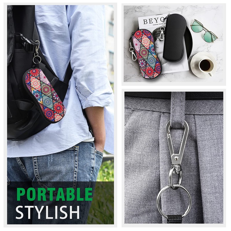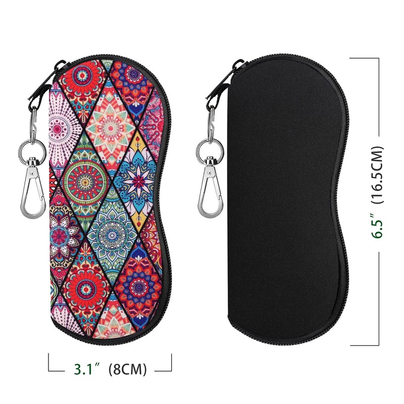 MoKo Glasses Case, Pack of 2 Lightweight Neoprene Zip Sunglasses Bag with Belt Clip for Glasses Frame Portable Case for Keys Pencils Cards Black + Diamond Shaped Datura Apple