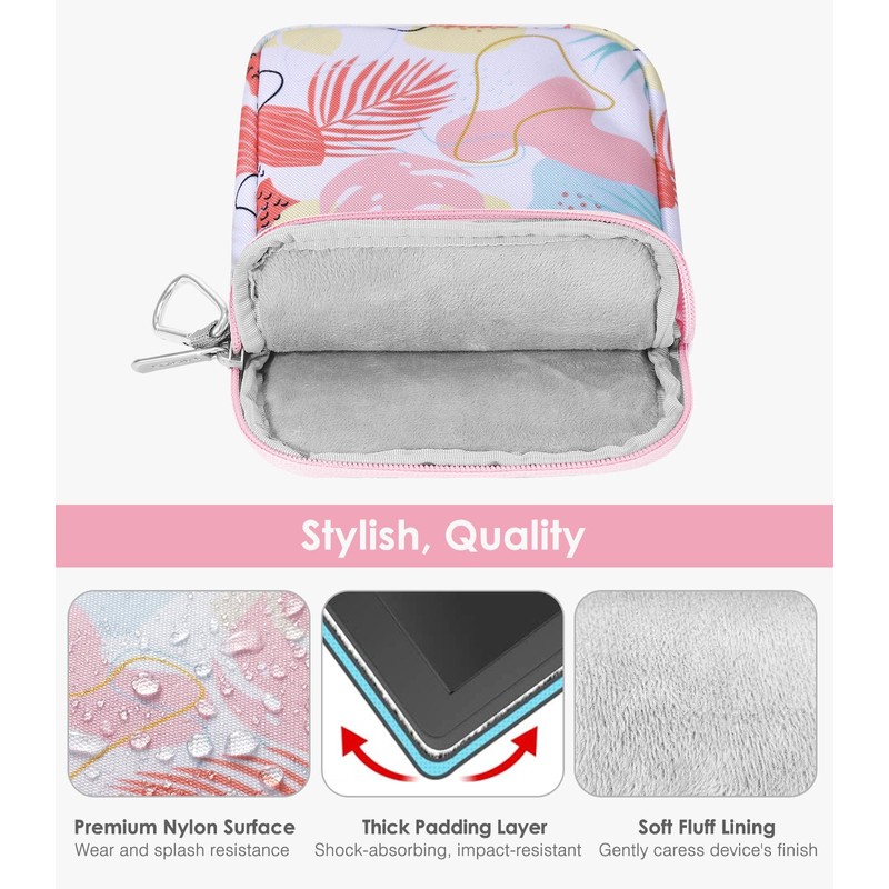MoKo Padded Ereader Sleeve Case for 6-7 inch Ereader Tablet Bag Protective Cover Pouch with a Carabiner, Compatible with 7" eReader Colorsoft Signature Edition 2024, Tropical Leaf