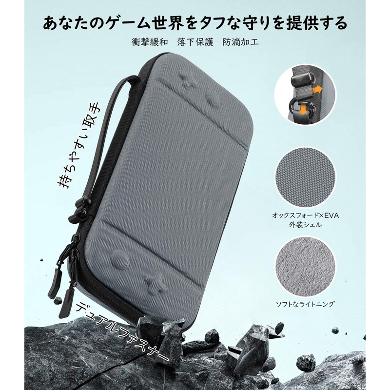 MoKo Switch2 ケース スイッチ2 カバー 第2世代保護バッグ 衝撃吸収 ストレージカバー オックスフォード生地 EVA中身内蔵 ソフトカード10枚収納可 ケーブル/イヤホンなど小物収納可能 全面保護 大容量 安定性 精密設計 固定バンド 揺れ防止 持ち運び便利 Gray