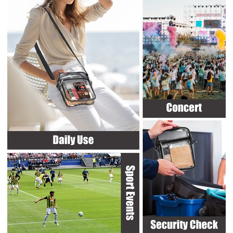 - Stadium approved: a transparent shoulder bag allows security personnel to identify the items in the bag at a glance, and helps you pass security control quickly. Perfect for stadium, sporting events, game day supplies, concerts, festivals, school, work, daily wear, etc.