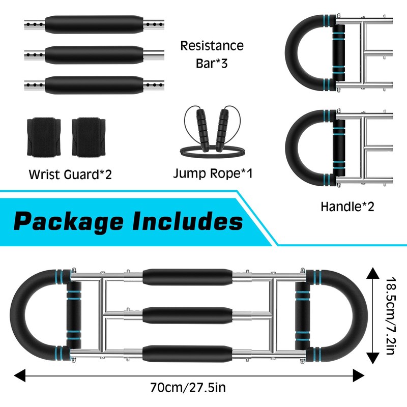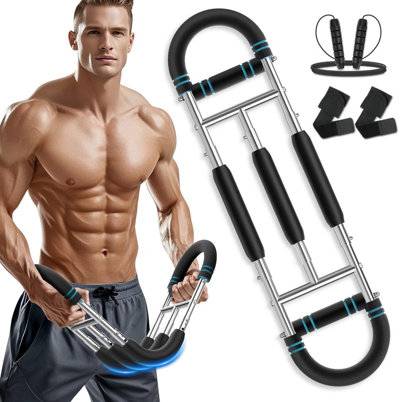 - Easy Installation & Carrying: The chest trainer for men is easy to assemble and disassemble. Its lightweight and compact design is convenient to store and carry, suitable for home or office workout, meeting the needs of fitness anytime, anywhere. It also comes with a jump rope, ideal for warming up before a workout.