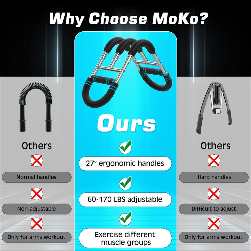 - Upgrade Resistance: Upgraded with 3 bars, the arm workout equipment offers adjustable resistance levels from 60-170 lbs, suitable for people with different fitness levels. Whether you're a fitness novice or a professional athlete, you can adapt the intensity to your own needs for progressive and effective training.