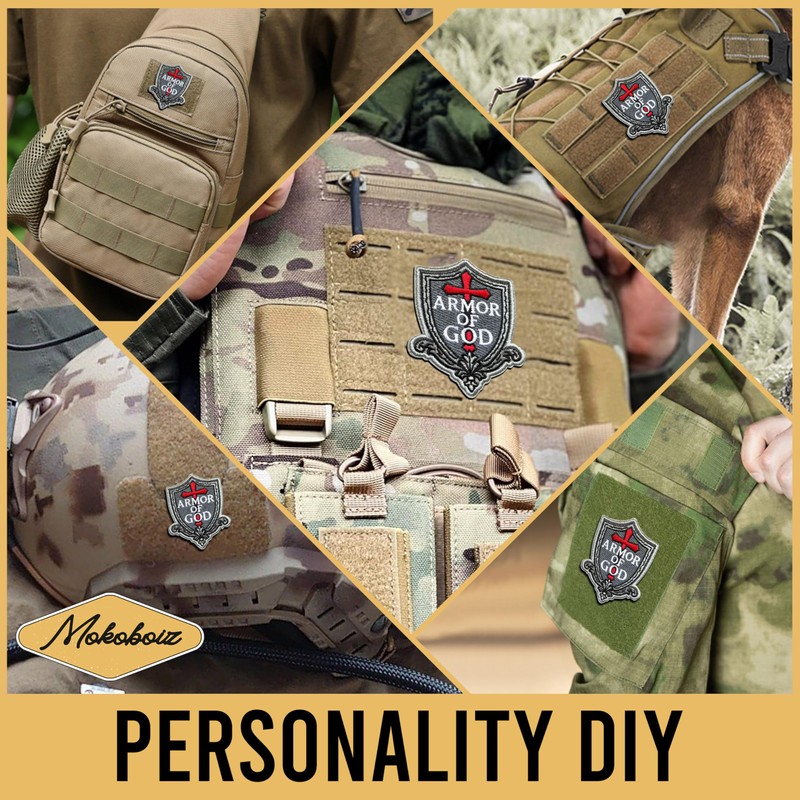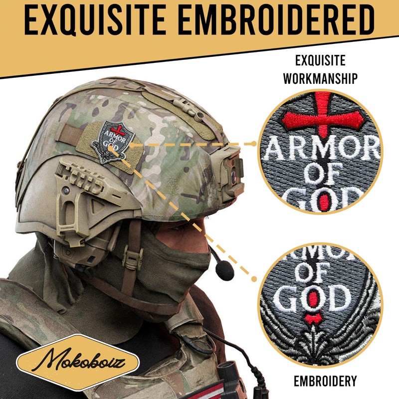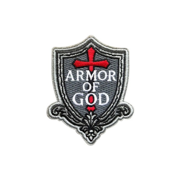 MOKOBOIZ Armor of God Cross Shield 3 Inches Hook and Loop Embroidered Applique Patches, Religious Embroidery Patch, DIY Accessories for Backpacks Army Vests Dog Harness Clothes, Gifts for Christians