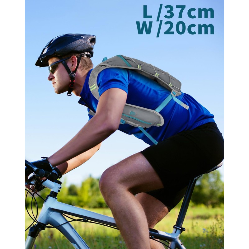 - Ultra Lightweight and Versatile Pocket: Ultralight design running backpack weighs only 5.0 oz (140 g) and measures 14.6 x 7.9 inches (37 x 20 cm). The cycling bag is designed to carry sports equipment at once, and has excellent storage capacity. The strap on both sides can hold 500ml water bottle or candy chocolate, and the zippered pocket can hold your cell phone, and the rear double layer main compartment can hold a 2L water bladder