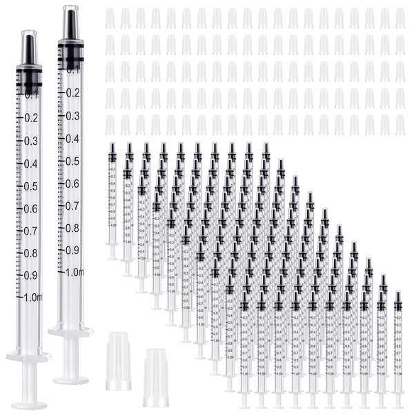 Molain 100 Pack 1ml Syringe with Cap, No Needle Syringe, Plastic Small Syringes with Cover for Scientific Labs, Measuring Liquids, Feeding Pets, Medical Student, Oil or Glue Applicator