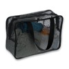 LARGE CAPACITY TRAVEL BAG: The collapsible black bag is flexible, water-resistant, and made from see-thru rubber mesh with deep outer zippered pockets. The flexible tote is large enough to carry beauty products, cooled hair tools, beach toys, and others.