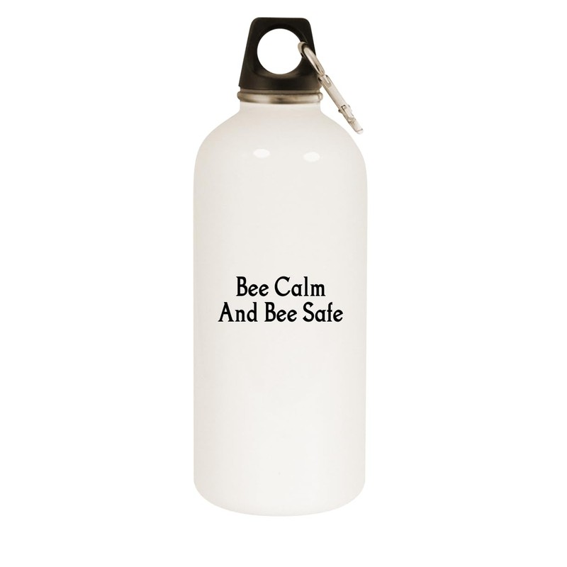 Molandra Products Bee Calm and Bee Safe - 20oz Stainless Steel Water Bottle with Carabiner, White