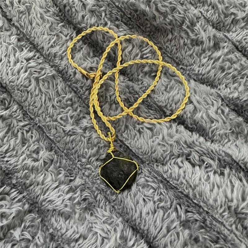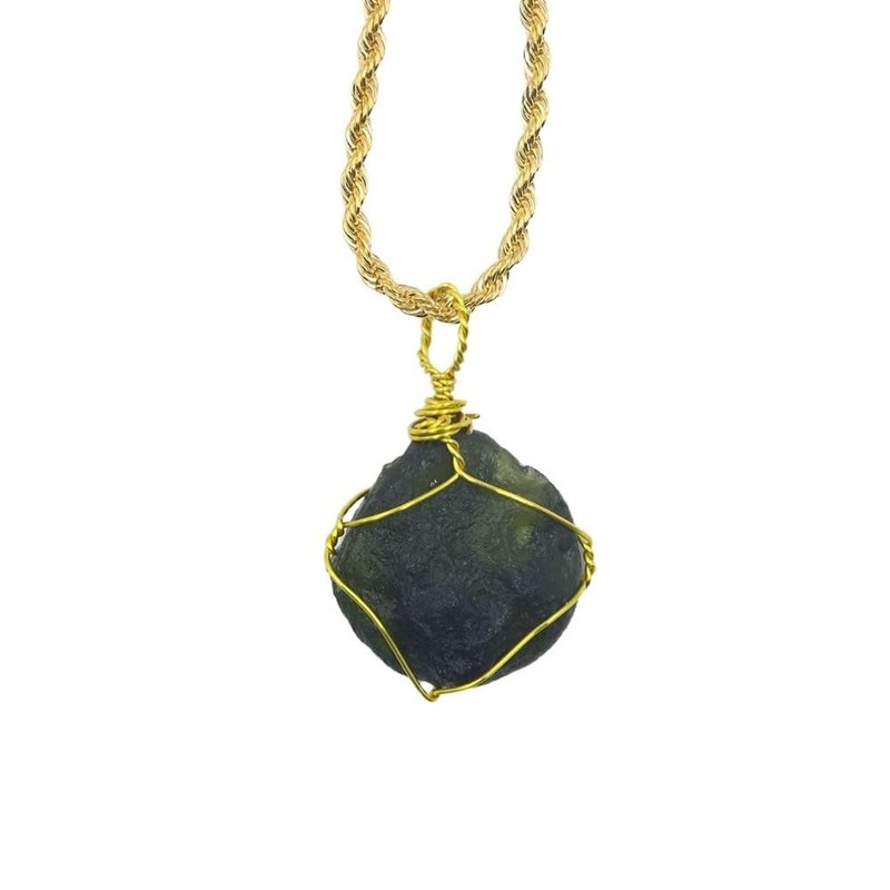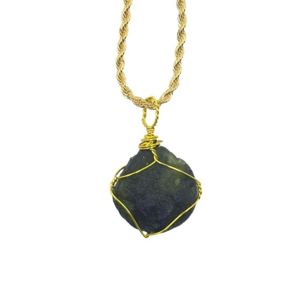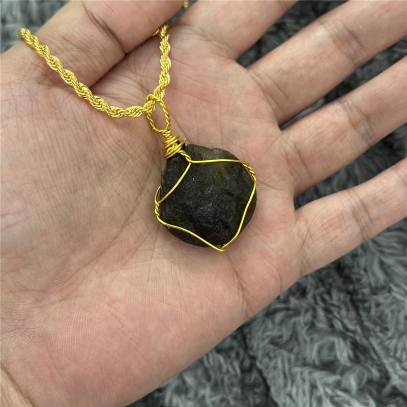 Moldavit Kristall Drahtgewickelte Halskette,Rohe Meteorit Heil Kristalle,Unregelmäßige Tektit Halskette