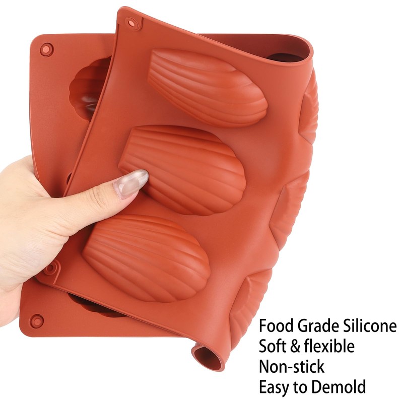 - Material: la sartén madeleine está hecha de silicona de alta calidad, que es antiadherente, flexible, duradera y fácil de limpiar.