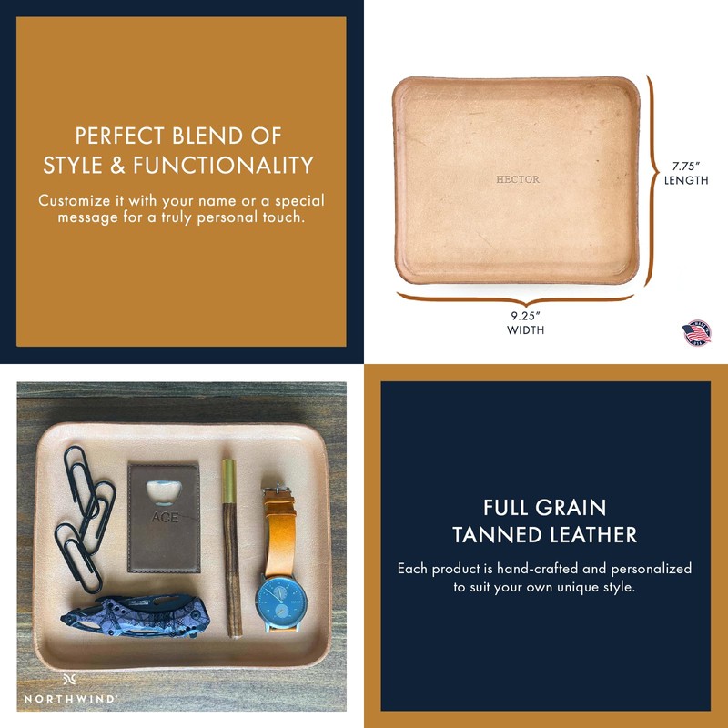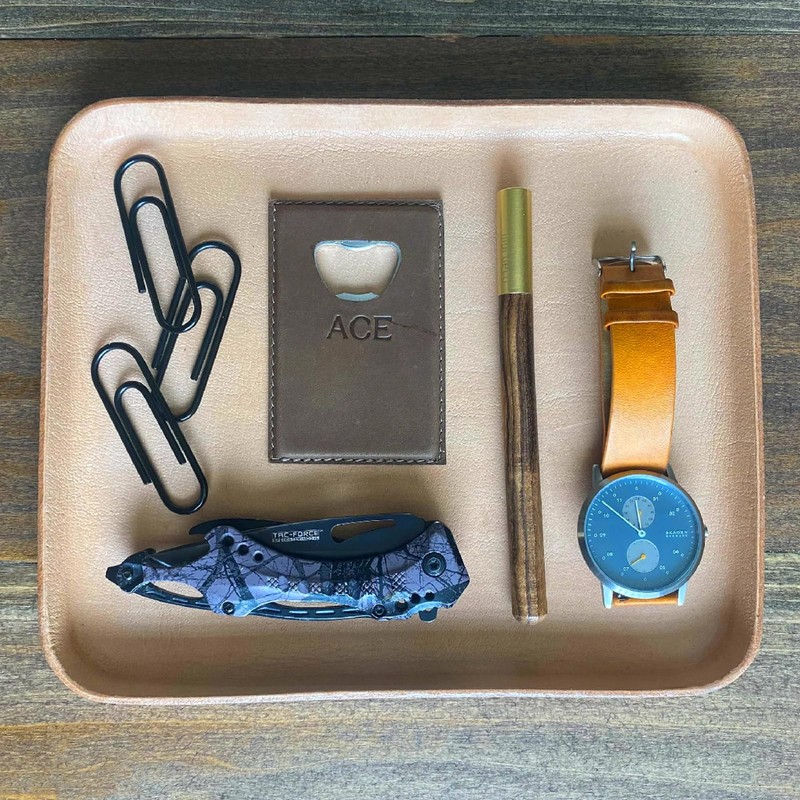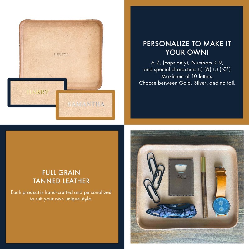 Molded Leather Valet Tray l Desk Organizer l Jewelry Tray l Personalized Valet Tray l Minimalist Catch All Tray l Vegetable Tanned Leather Tray l Dimensions 9.1" x 7.3" x .8" l Add your Initials l