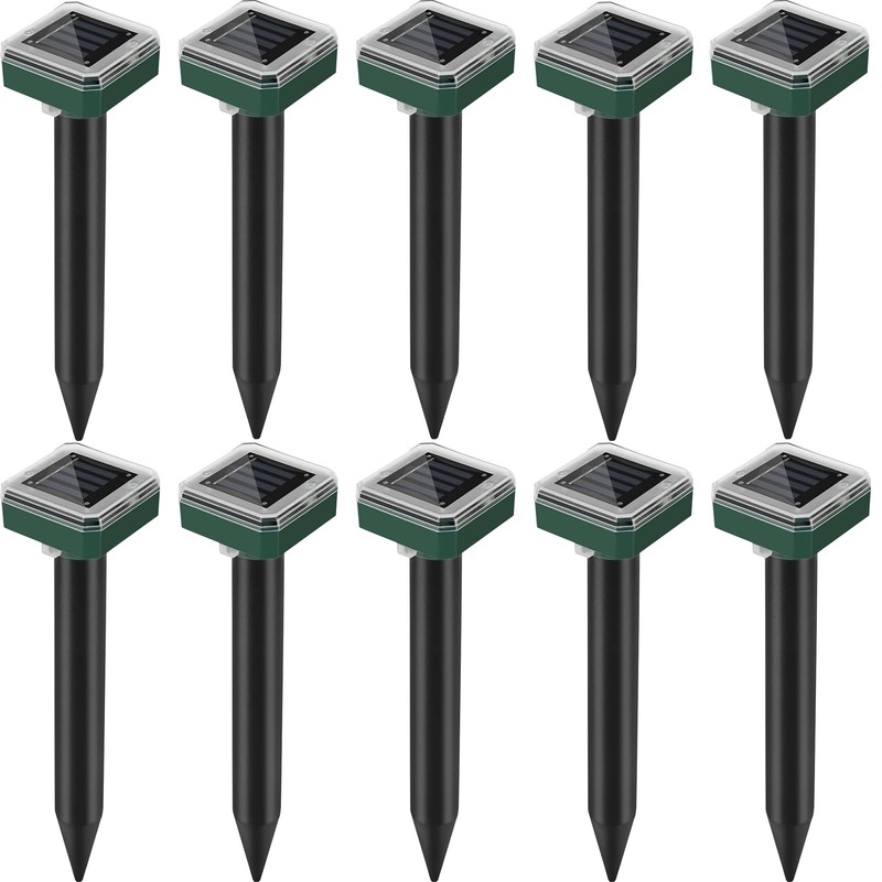 Mole Repellent Solar Powered 10 Pack, Snake Vole Repellent Outdoor,Waterproof Ultrasonic Deterrent Groundhog Squirrel Gopher Vole Deer and Chipmunk for Lawns Garden & Yard