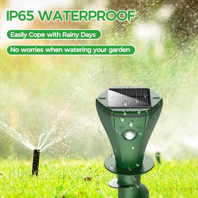 - 【IP65 Waterproof, Need Wipe the Panel Regularly】This chipmunk repellent with IP65 waterproof can work normally even on rainy days, no need to worry about stopping working. This mole repellent for lawns can withstand all kinds of weather, such as rain, snow, frost, and heat. Note: Choose the best location with sunlight exposure, and wipe it with a damp cloth regularly. Dirty panels of the snake repellent will reduce the amount of sunlight available to charge your device's battery.