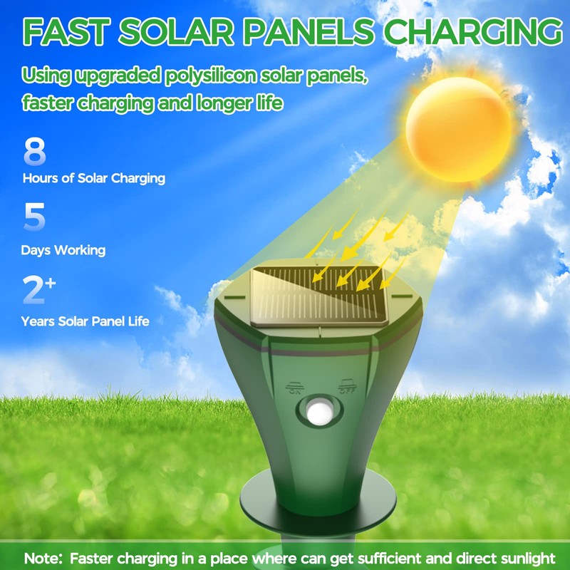 - 【No Burden of Cleanup】This mole repellent solar powered is safe for humans, babies, and pets. Ultrasonic technology is quiet, and odor-free, ensuring you are always in a safe and friendly environment. With mole repellent for lawns, you can ditch traditional mole traps, mole killers, or mole poisons, and never worry about cleaning up dead mole again.