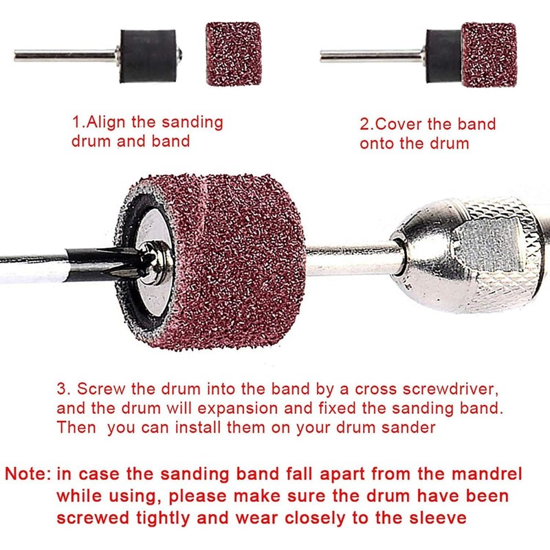 - Various combinations – sanding belt sleeves contain 2 sanding grains (grit 80, grit 120) and 3 diameters (1/2 inch, 3/8 inch and 1/4 inch), each grain and size has 24 pieces of sanding belts