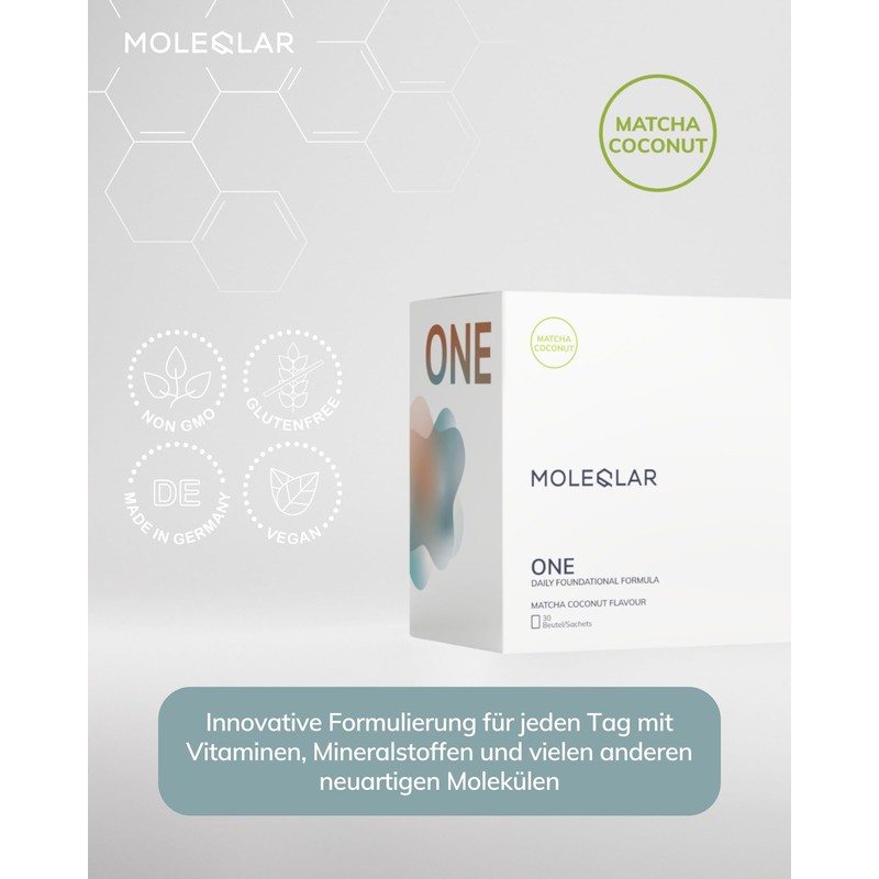 MoleQlar MoleQlar ONE Komplex 30 Sachets - All in ONE Foundational Formula - Supplement mit Longevity Moleklen, Vitaminen und Mineralstoffen - Zitrone, Natural, Matcha-Kokos (30 Sachets, Matcha-Kokos)