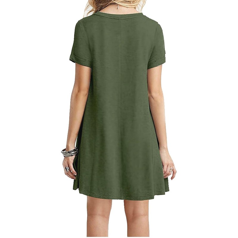 MOLERANI Women's Casual Plain Simple T-Shirt Loose Dress(Army Green,M)