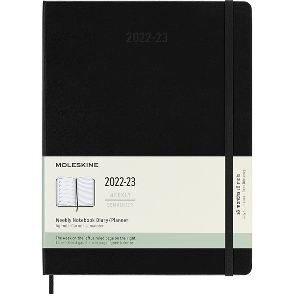 Moleskine - 18-Month Weekly Planner/Diary, Weekly Planner 2022/2023, Weekly Notebook with Hard Cover and Elastic Closure, XL Size 19 x 25 cm, Colour Black