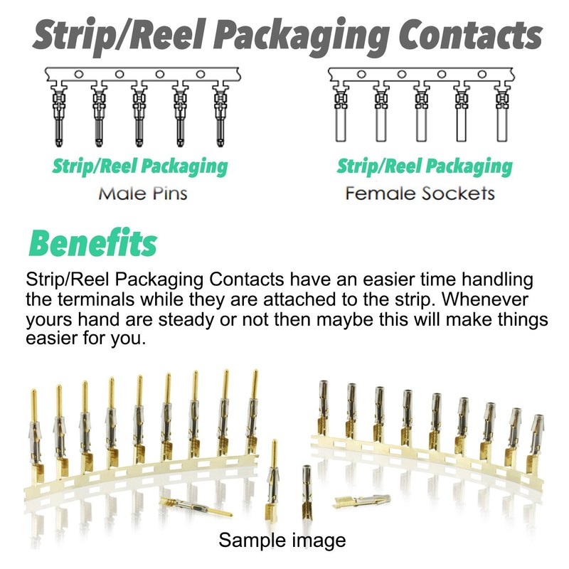 Strip/Reel Packaging Contacts have an easier time handling the terminals while they are attached to the strip. Whenever yours hand are steady or not then maybe this will make things easier for you while on your project.