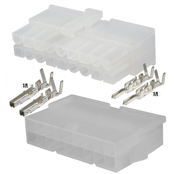 Qty: 1 - Molex, 18-Pin Female Connectors< Qty:18 - Molex, Male Crimp Pins 18-24 AWG Mini-Fit Jr (2 Extra Pins)