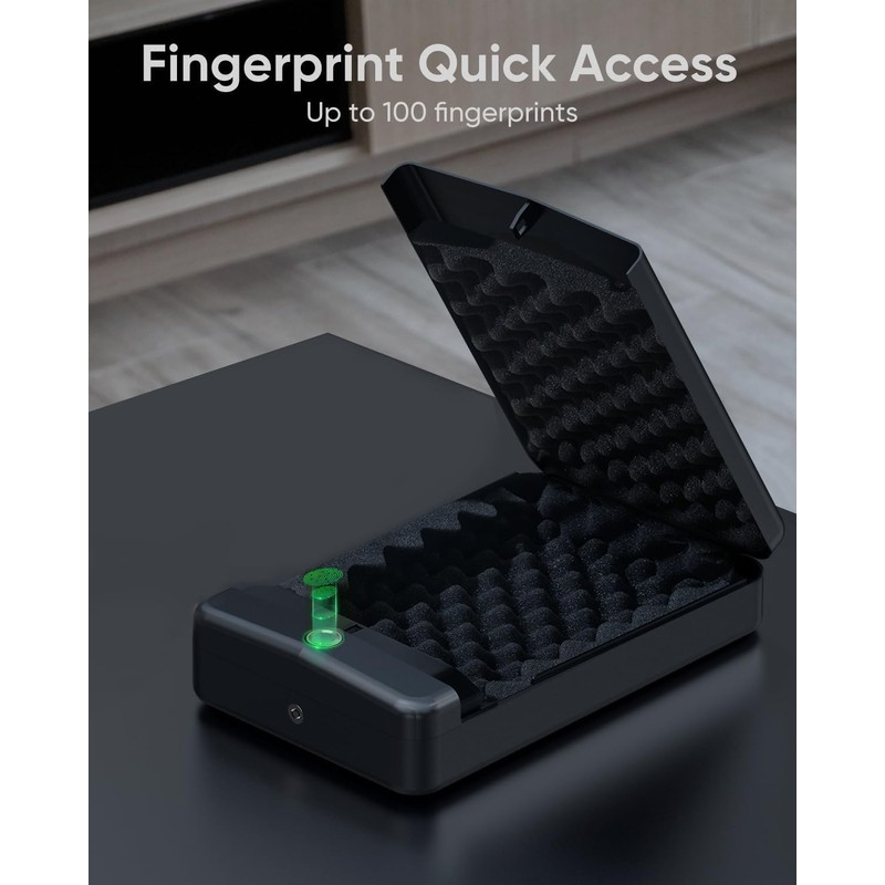 - Biometric Quick Access: The fingerprint was super easy to setup, very fast and accurate reading, the portable gun safe allows for reaching your firearms within 1s and can be programmed to identify up to 100 fingerprints.