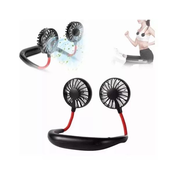 Ventilador de aire portátil recargable por USB, ventilador de cuello manos libres, Mini ventilador de deportes colgante, doble ventilador ajustable de 3 velocidades para la oficina en casa