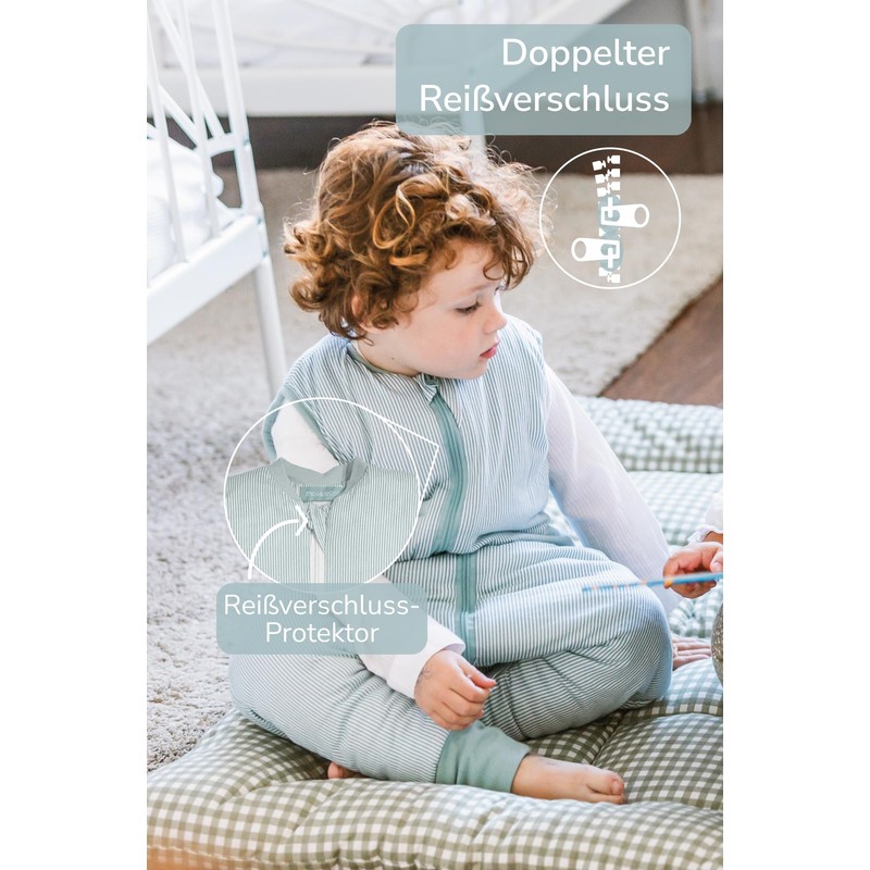- Durability and quality: our concern for quality is evident in every detail of the children's sleeping bags. The fabric density is carefully designed to improve product quality and make it more durable. Thanks to the high-quality cotton, they are pleasantly soft and durable to use to ensure that they remain flawless even after many washes. The sleeping bag is extra soft and supports healthy baby sleeping.