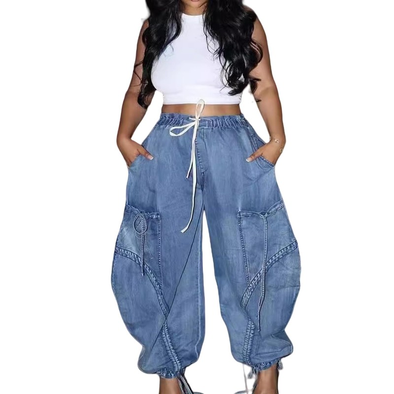 - 【FEATURE】: Wide leg jeans woman, Drawstring jeans women, High waisted jeans for women, Barrel jeans, Y2K jeans, Elastic waist, Baggy harem pants denim, Trendy and fashion, Soft and comfy, 2025 streetwear jeans