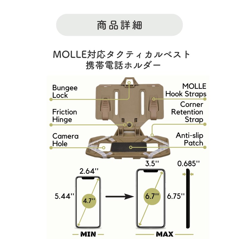 - MOLLE system compatible and can be attached to a variety of equipment, such as tactical vest, chest rig, backpack, etc