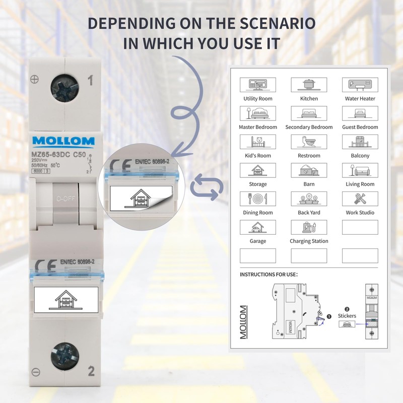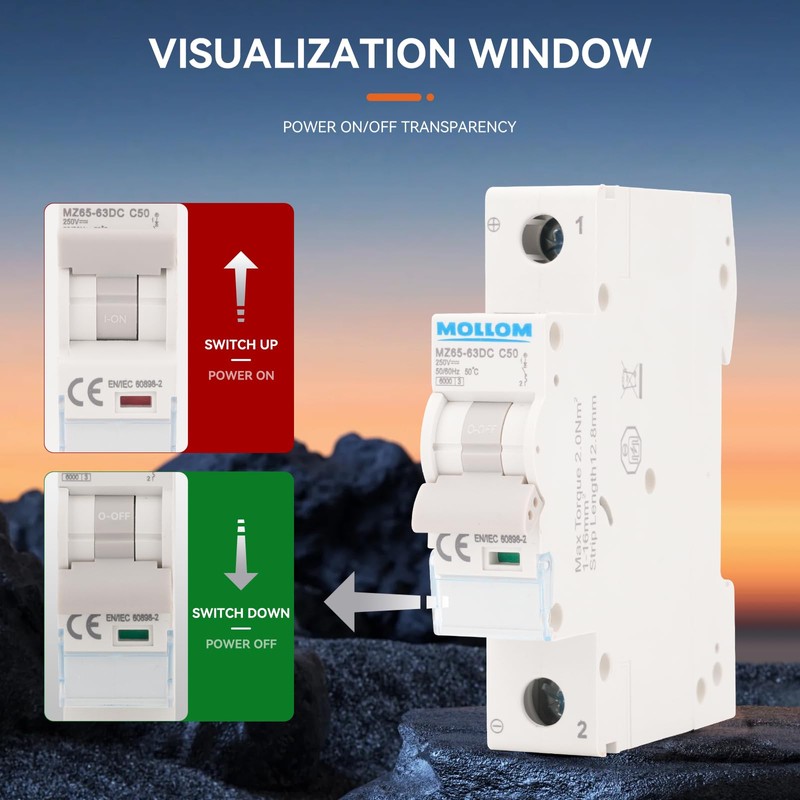 MOLLOM DC 1 Pole Miniature Circuit Breaker, 250V 16Amps, C16 Scene Visualizat...