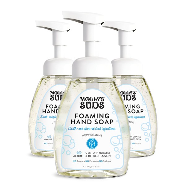 Molly's Suds Foaming Hand Soap - Made with Aloe and Coconut Oil | Moisturizing Hand Wash | Plant-Based, Infused with Essential Oils | Peppermint - 8.25 Oz (Pack of 3)