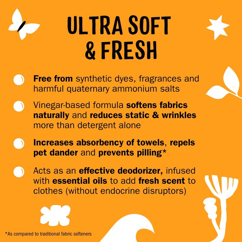 • SOFT, STATIC FREE CLOTHES: Unlike traditional fabric softeners that can deposit residues on clothes, Molly's Suds vinegar-powered Fabric Softener uses simple ingredients (no harmful quaternary ammonium compounds!) to leave clothes feeling fresh, cozy, and comfy. Ideal for sensitive skin, the planet, and all washing machines. Our clean formula reduces static and wrinkles more than detergent alone, so you and your family can look and feel your best.