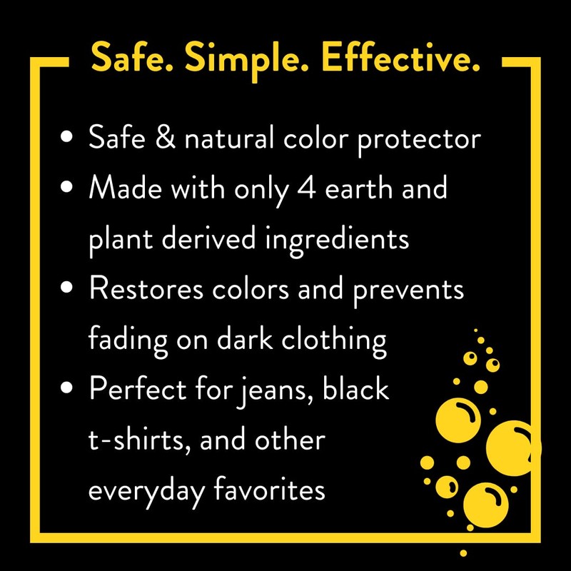 - RESTORES DARK COLORS & PREVENTS FADING: Simple, effective color protector and laundry stain remover for dark clothing. Brightens and preserves deep colors on everyday favorites such as black t-shirts, dark jeans, and other wardrobe staples. Instantly adds new life to old t-shirts and vintage clothing!