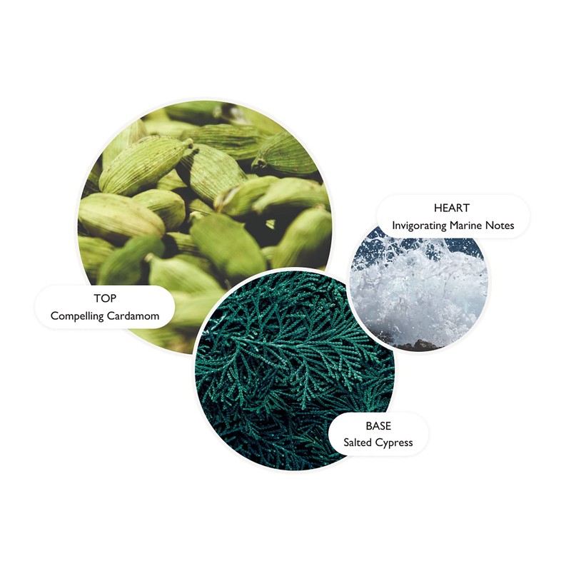 - Top notes: fig leaves, cardamom and bergamot Middle notes: sea notes, jasmine and violet leaf. Base notes: salty cypress, cedarwood, musk. Fragrance family: aromatic