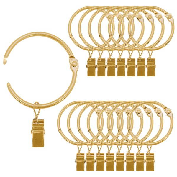 MOLYTOO 2 Inch Openable Curtain Rings with Clips Gold, 18 Pack 2'' Metal Openable Curtain Clips with Rings Window Curtain Rod Clips Hooks Hangers Rings (Gold, 2''), aa99