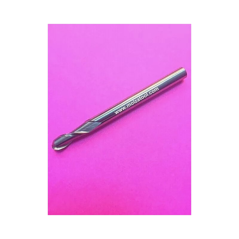 MOLZA TOOL CARBIDE BALL NOSE END MILL 1/4" DIAMETER 3/4" LOC 2 FLUTE 3" OAL 30 DEG HELIX