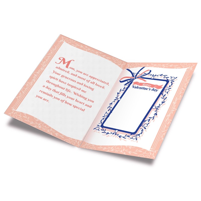 - Front Message: With All My Heart Happy Valentine’s Day Mom Inside Message: Mom, you are appreciated, admired, and most of all loved. Your generous and loving spirit have inspired me throughout life. Wishing you a day that fills your heart and reminds you of how special you are.