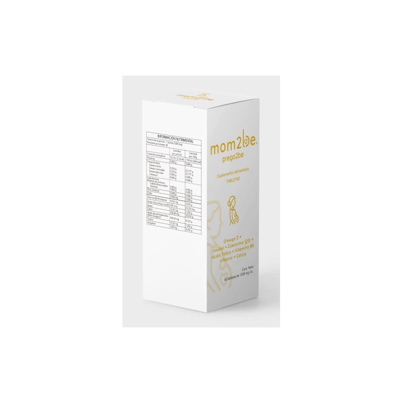 mom2be prego2be- Suplemento Alimenticio para consumo durante el embarazo cido Flico, Calcio, Hierro y Omega- 3 Tabletas para 60 das