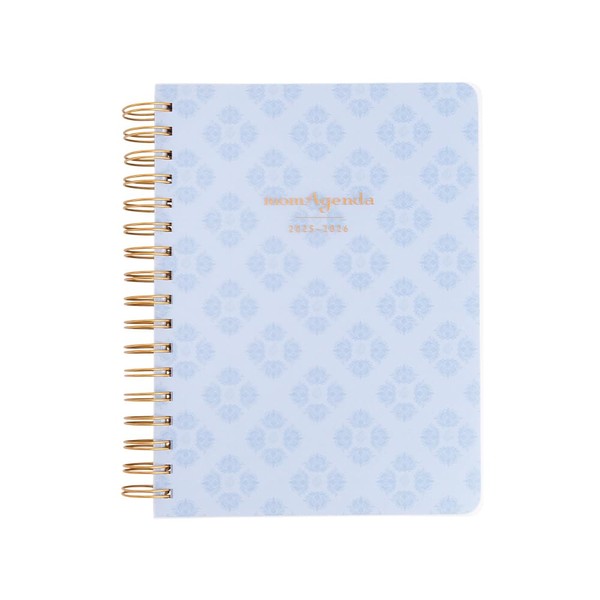 momAgenda Desktop Spiral Planner for Busy Moms with Space to Organize Schedules and Appointments for Up To Four Children- 18 Month Calendar (July 2025-December 2026) (Blue Damask)