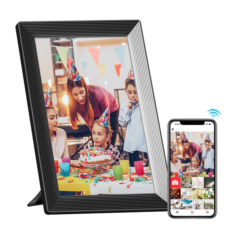 Moman Digitaler Bilderrahmen WF11T, 32GB IPS-Touchscreen Automatische Drehung Sofortiges Teilen von Fotos/Videos über die App Ideales für Jubiläen Geburtstage und mehr