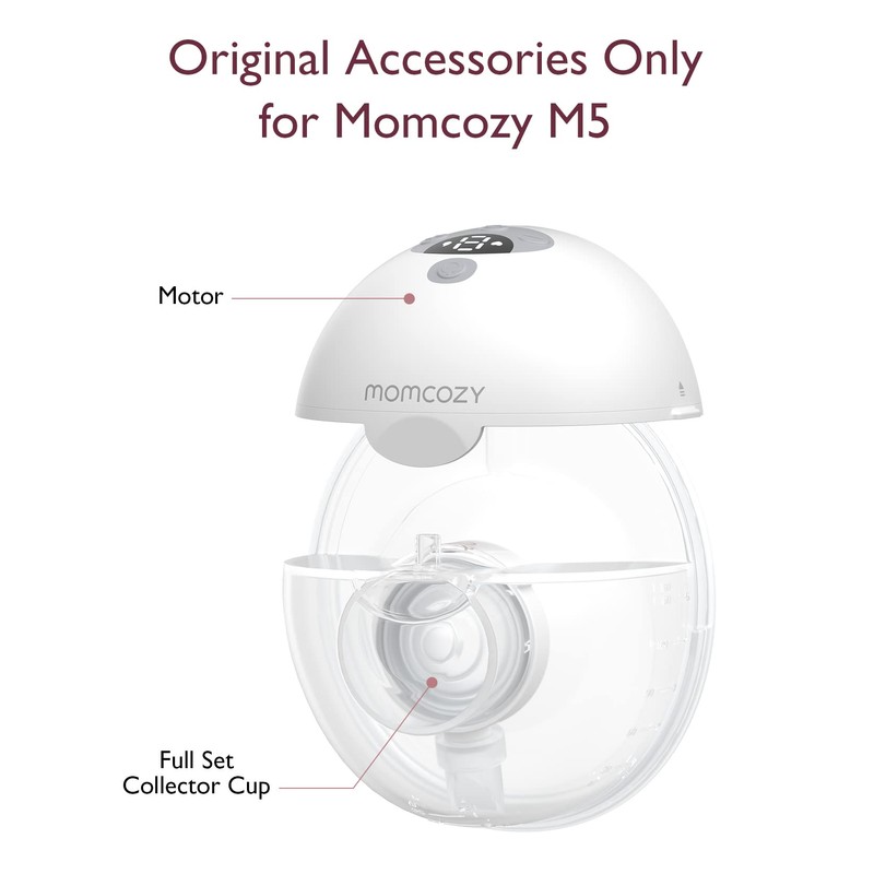 - The authentic Momcozy wearable breast pump full set milk collector cup accessories with a double-sealed flange of 24mm are suitable for use with Momcozy M5 wearable breast pump. Original accessories and an upgraded double-sealed flange increase the seal and grab every drop of milk for a better breast-pumping experience.