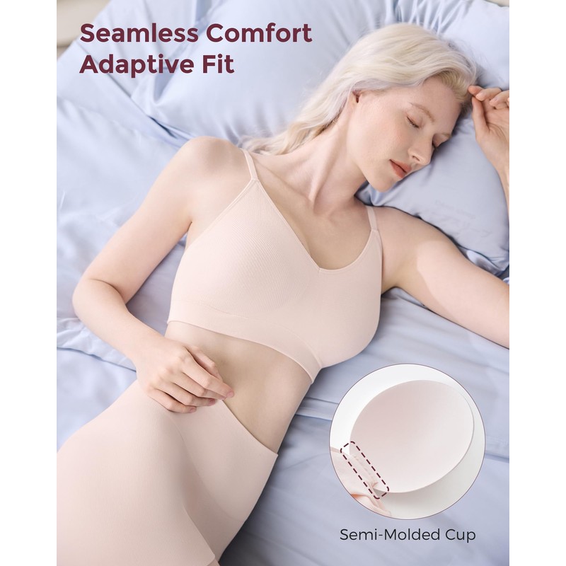 - Wire-Free Seamless Fit: Seamless construction eliminates pressure and discomfort; stretchy fabric with semi-fixed pads gently adapts to breast changes for natural shape and comfort.