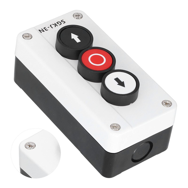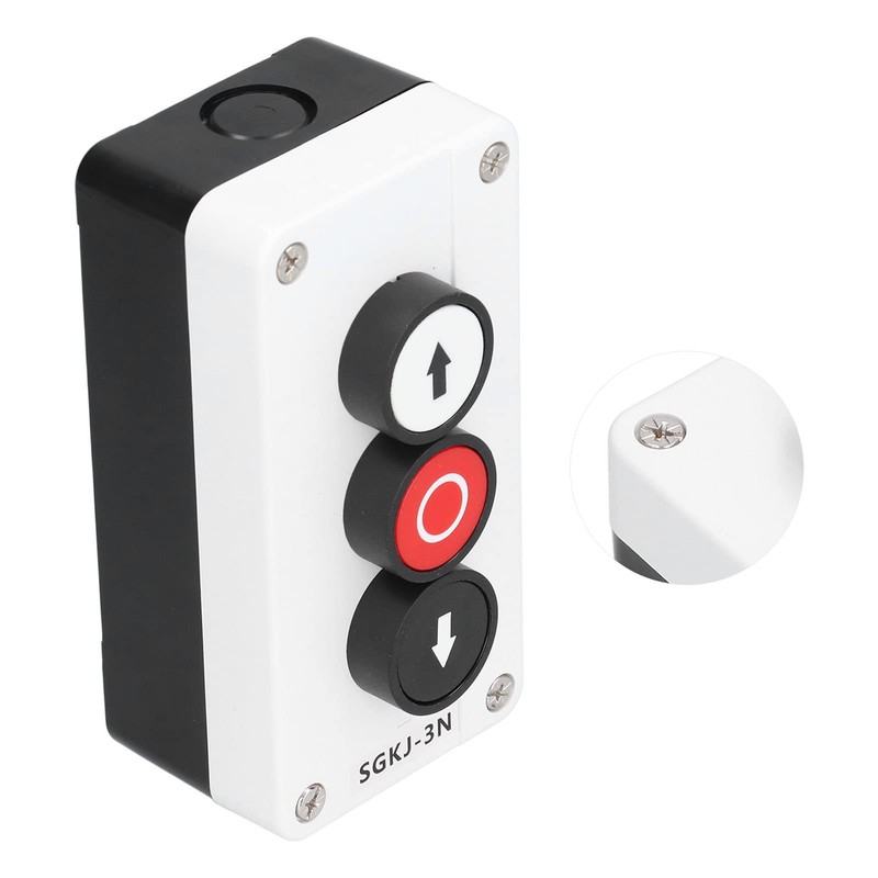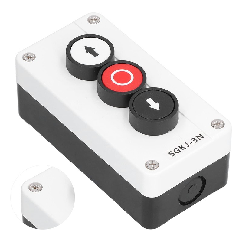 - [Ideal for Various Applications] This self-recovery button switch is suitable for 3-way/4-way cranes, roller gate control, etc. Press the up and down buttons to press, the red button to stop.