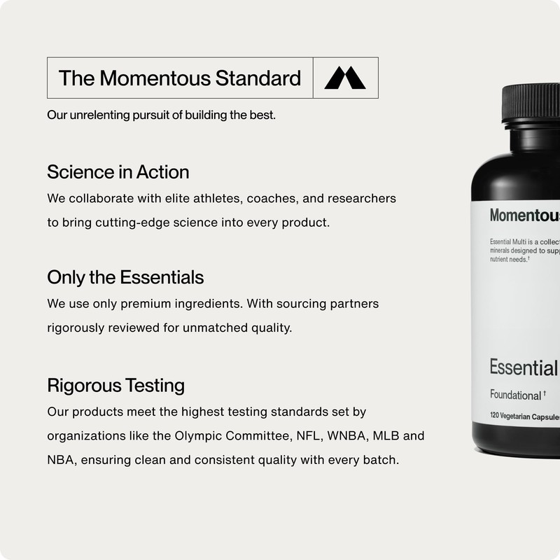 Momentous Essential Multivitamin for Women & Men - Complete Vitamin & Mineral Complex for Athletes & Wellness Enthusiasts - GMO-Free, Gluten-Free, 30 Servings