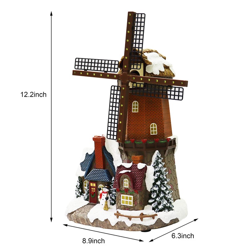 MOMENTS IN TIME Polyresin Christmas Village Building, Windmill with Village Building with LED Lights and Animation - Battery Operated (not Included) (12.2" H x 9.0" W x 6.3" D)