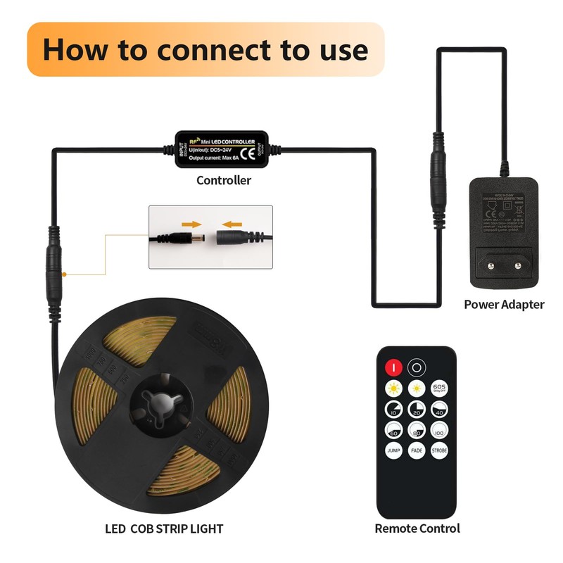 - 【Brightness dimmable with RF remote control】: turn cob light bars on and off. The COB LED strip natural white 4000 K, 5 m dimmable 24 V flexible COB LED strip light set, with GS power supply and RF remote control, you can adjust the brightness with RF remote control to meet your different needs: daily lighting, ambient light, DIY decoration.