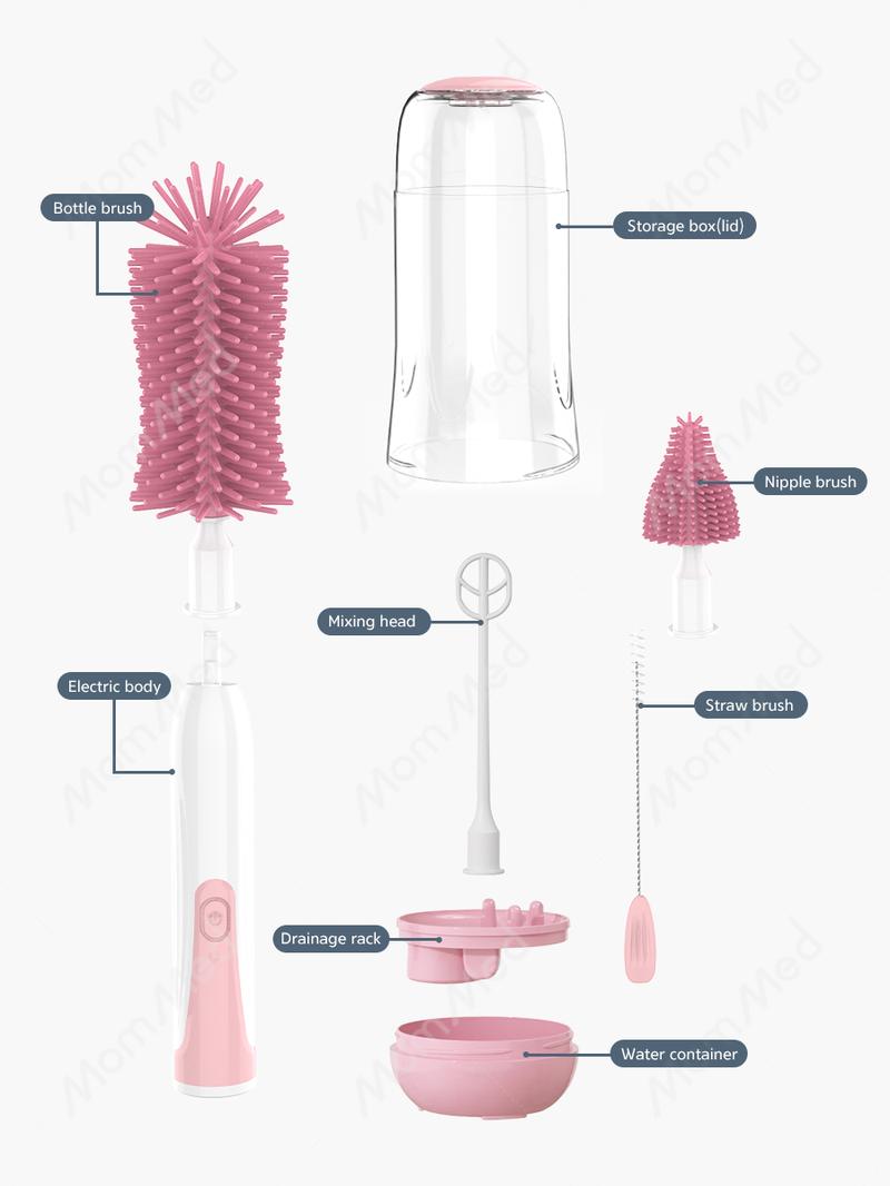 MomMed Bottle Cleaning Brush, Baby Bottle Brush Cleaner Water Bottle Cleaning Kit, Nipple Brush Pacifier Cleaner Straw Cleaner Brush for Newborns,4 Packs - Specification: Manual baby bottle brush