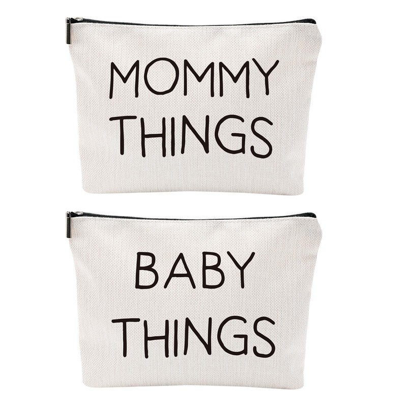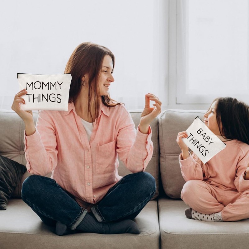 - STYLISH AND UNIQUE DESIGN: Turn heads with the Mommy and Baby Bag’s sophisticated and unique design. Featuring a fade-resistant thermal transfer print of "MAMA THINGS" and "BABY THINGS," this bag is both functional and fashionable. The smooth metal zipper adds a touch of elegance, making it a chic accessory that enhances any outfit.