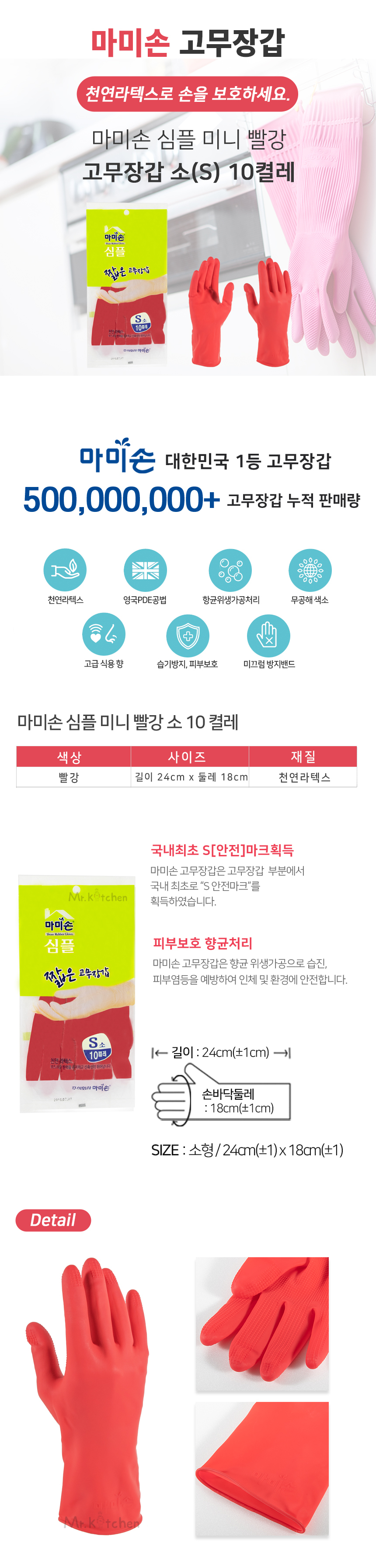 Mommyson short rubber gloves simple red small 10 pairs / 마미손 짧은 고무장갑 심플 빨강 소 10켤레