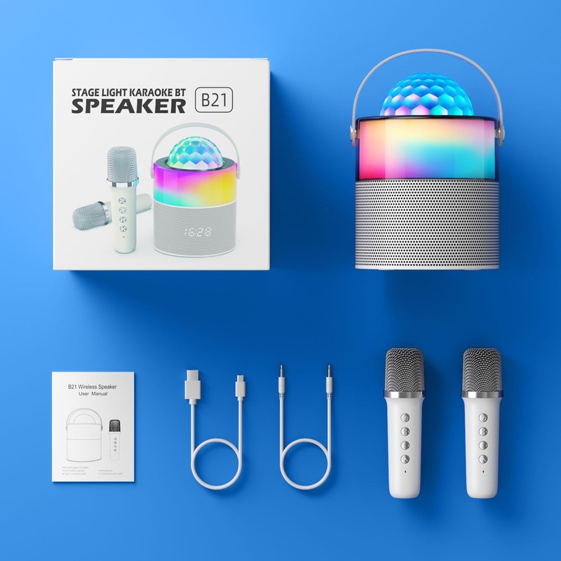 - Superb HD Stereo Sound Quality: The portable Karaoke machine with bluetooth and wireless microphone has a high-performance audio driver and a built-in 10W speaker designed, can eliminate all the noise and enjoy 3D surround high fidelity sound quality. The 2 karaoke microphones support 6 kinds of magic voice effect,including reverb, baby voice, original, monster,male voice and female voice. The high-quality wireless microphone also has accompaniment function