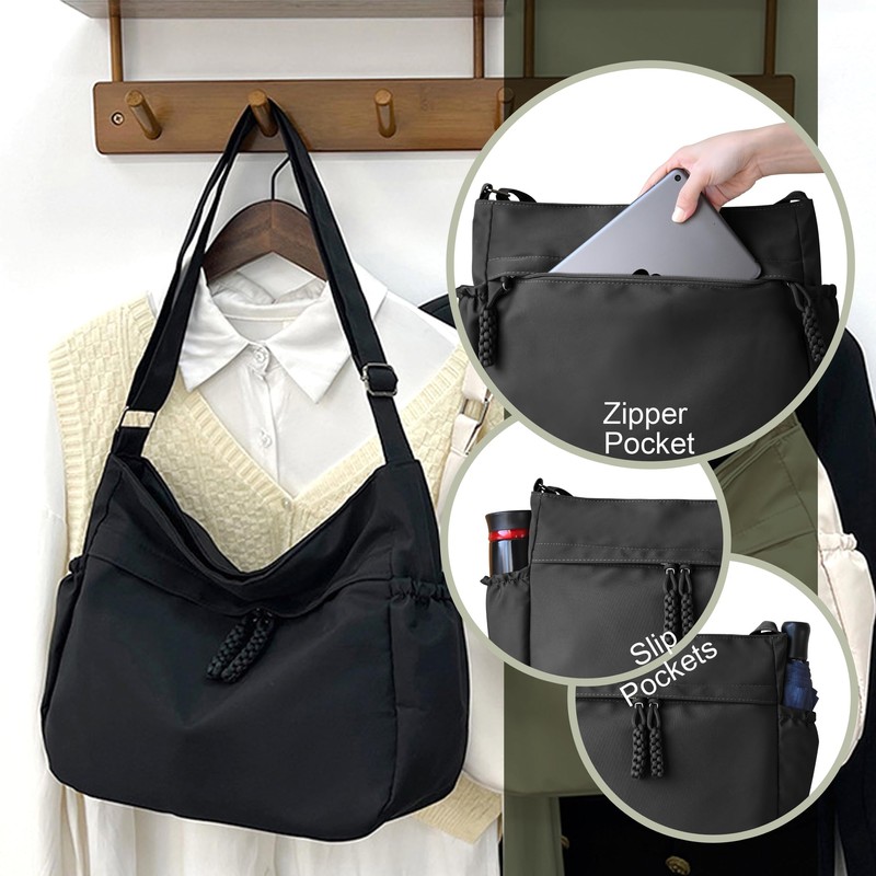 MOMOJULI Women Hobo Bag Large Crossbody Bag Multi-Pockets with Adjustable Shoulder Strap Black